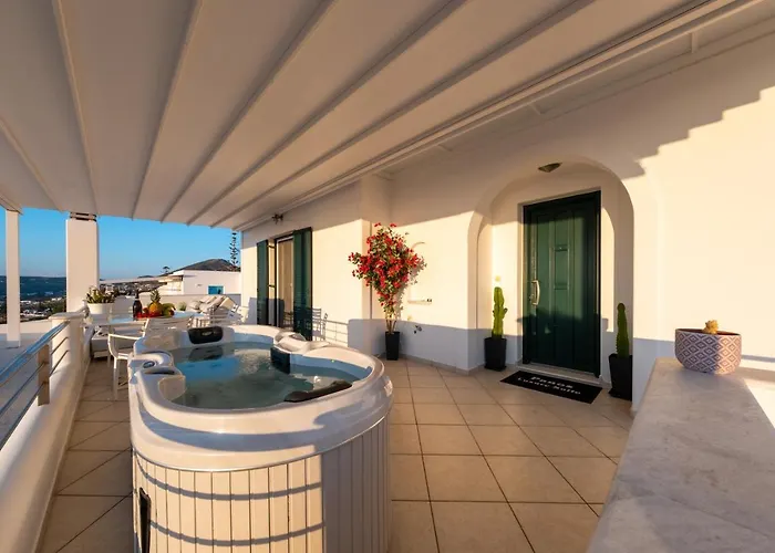 Offering a Jacuzzi, the 1-bedroom Panos Luxury Suite is located approximately 20 minutes on foot from Frankish Castle. Situated about 15 km away from the Paros National airport, the villa offers rental cars for added fun.